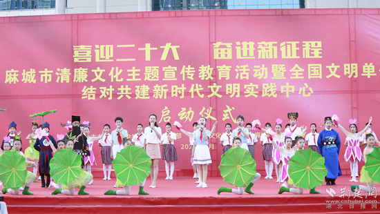 荊楚網(wǎng)(湖北日?qǐng)?bào)網(wǎng))訊(通訊員謝靖)“濯濯清漣,亭亭清蓮,一品清廉,愛(ài)蓮,更贊廉?!?月29日,在麻城市清廉文化宣傳教育活動(dòng)暨全國(guó)文明單位結(jié)對(duì)共建啟動(dòng)儀式上,麻城市實(shí)驗(yàn)二小的情景劇《一品清廉》傳來(lái)聲聲清脆的倡廉之聲,贏得現(xiàn)場(chǎng)觀眾陣陣掌聲。
