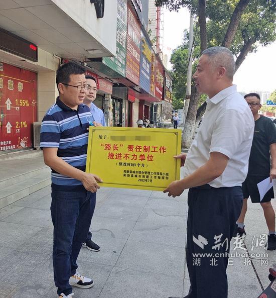荊楚網(wǎng)(湖北日報網(wǎng))訊(通訊員 許俊孝)陽新縣城管局7月22日表示,為著力構(gòu)建城市共建共管、全民共創(chuàng)共享工作新格局,助力新型城鎮(zhèn)化示范縣建設和國家文明城市創(chuàng)建,陽新縣對“路長”和“門前三包”兩項城市眾管工作機制責任單位實施“黃牌”警示制度。目前,已有4家單位因連續(xù)兩個月考核不達標“榮獲”此牌,并掛牌督辦,另有六家單位獲得“示范單位”金牌榮譽。