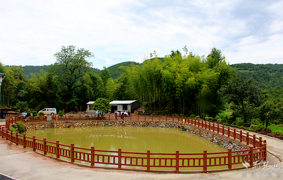 竹林之上,一棵450年的皂莢樹旁,當(dāng)家塘石岸成環(huán),仿古式護欄勾勒出這口清水塘的模樣。踩在塘畔的行道磚上,望著村民整潔寬敞的房舍,水泥路到家門口,車子開到塆里頭。