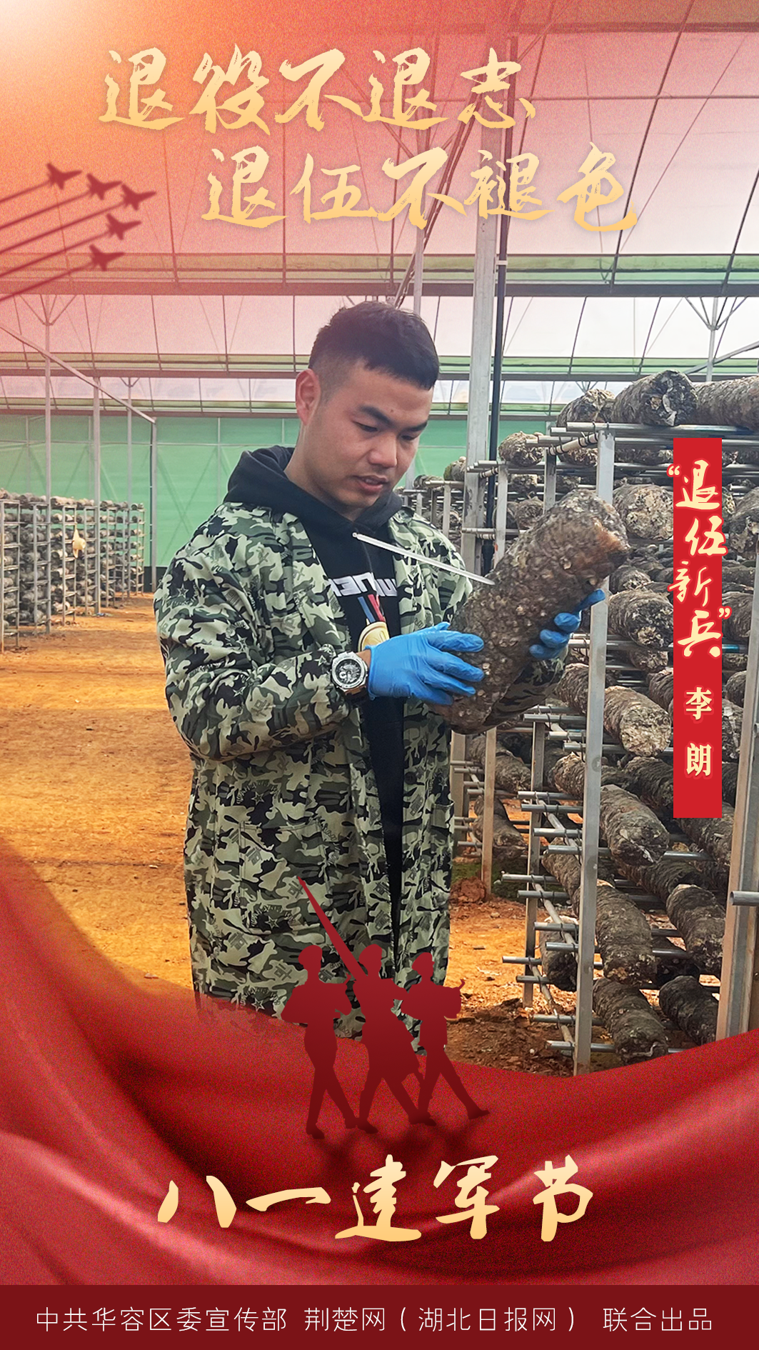 李朗,華容區(qū)廟嶺鎮(zhèn)大葉村人,2018年9月入伍。在部隊,他鍛煉成為一名優(yōu)秀的偵察兵,被授予“四有軍人”光榮稱號。2020年從部隊退伍返鄉(xiāng)后,李朗選準(zhǔn)人工培植香菇項目開始創(chuàng)業(yè),并成立“鄂州市林朗菌業(yè)專業(yè)合作社”。