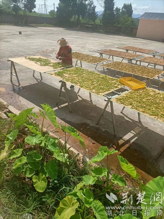 “將采摘回來的黃花攤曬,這活挺簡單,也不是很累。干一天,還能掙個90塊錢?!笨录毴葸肿斓?,像我們又沒有什么知識技能,能在家門口打工掙錢,為家庭減輕點生活壓力,還是挺知足的!和我一樣,在基地打工掙錢的農(nóng)村婦女有20多人嘞!