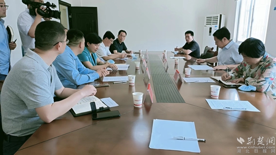 黃岡市委組織部、市商務(wù)局領(lǐng)導(dǎo)與羅田縣委書記及相關(guān)部門負(fù)責(zé)人共同商量對策,解決企業(yè)面臨的“違約”難題。通訊員供圖