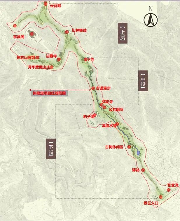 其中,東方山特色文旅一期項(xiàng)目擬投入建設(shè)資金1800萬元。分三段建設(shè),上段2.3公里,法藏寺到中峰古剎道路提檔升級,實(shí)施道路拓寬、路面刷黑、排水設(shè)施建設(shè),預(yù)計投入資金550萬元;中段0.5公里,張家灣豹子洞至中峰古剎登山步道升級及景觀步道建設(shè),預(yù)計投入資金600萬元;下段1.7公里,張家灣豹子洞至栗山路區(qū)間實(shí)施道路拓寬、路面刷黑、溪流水景整體改造升級及景觀節(jié)點(diǎn)配套服務(wù)設(shè)施建設(shè),預(yù)計投入資金650萬元。