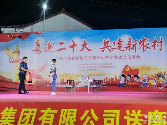荊楚網(wǎng)(湖北日?qǐng)?bào)網(wǎng))訊(通訊員李傳麗 楊婷 楊芳)中秋節(jié)即將來(lái)臨,為豐富廣大黨員干部群眾的精神文化生活,營(yíng)造節(jié)日喜慶氛圍。9月8日晚,赤壁交投集團(tuán)在該市趙李橋鎮(zhèn)趙李橋村舉辦“喜迎二十大 共建新農(nóng)村”送廉文化下鄉(xiāng)主題晚會(huì),以文化浸潤(rùn)凝聚黨心民心,用文化展現(xiàn)從嚴(yán)治黨,弘揚(yáng)清風(fēng)正氣。