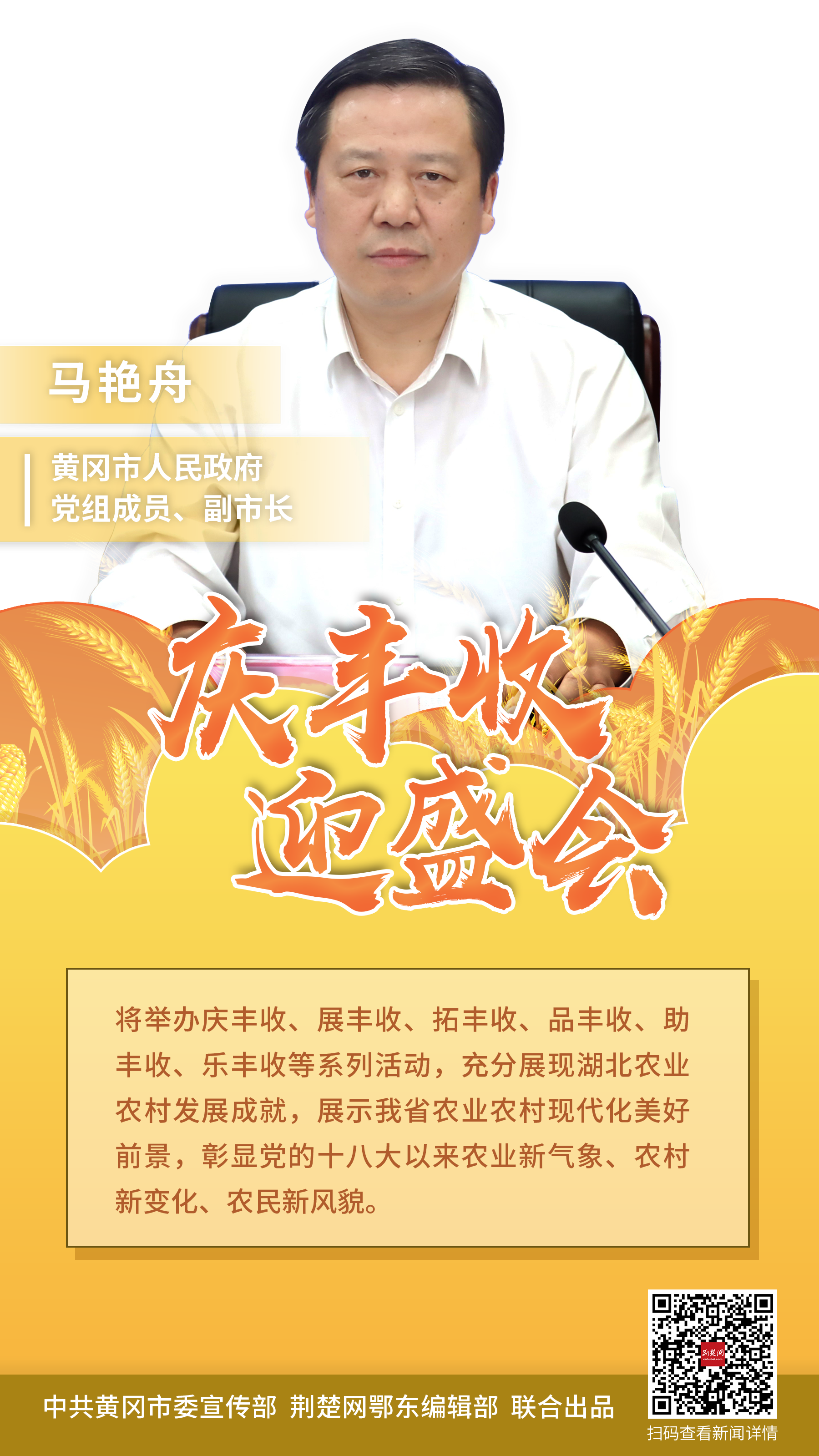 此次活動由省農(nóng)業(yè)農(nóng)村廳和黃岡市人民政府共同主辦,以“慶豐收 迎盛會”為主題,定于9月23日在麻城市舉辦開幕式。