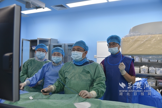 連一醫(yī)副主任醫(yī)師楊凱為患者開展射頻消融術(shù)(右二) 通訊員 供圖
