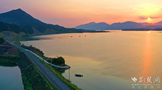 從崇陽方向經(jīng)S246鳳界線開往葛仙山,一路映入眼簾的是陸水河兩岸連綿十余公里層林盡染。登芳世灣觀景臺,可靜看落霞孤鶩的美景,靜聽花開花落的聲音。春可賞櫻,夏可觀竹,秋可垂釣,冬泡溫泉。