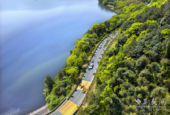 在赤壁崇陽的交界處,省道S246和S361在葛仙山腳下連成了一個圈。從葛仙山山麓省道S361大羊線芳世灣大橋段出發(fā),經(jīng)陸水湖、雪峰山、S246鳳界線洪下十里畫廊、浪口大橋、天葛線,最終回到葛仙山,這就是醉美陸水十里畫廊,全程約80公里。