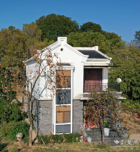 村民熊建超房前柿子樹掛滿果子。
