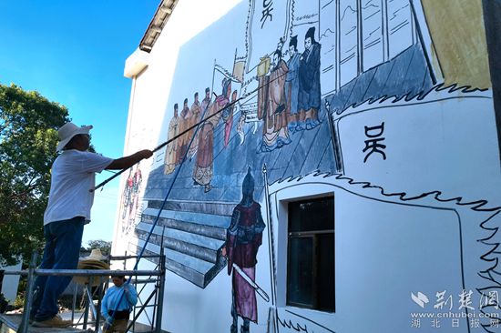 涂畫師設計墻畫。