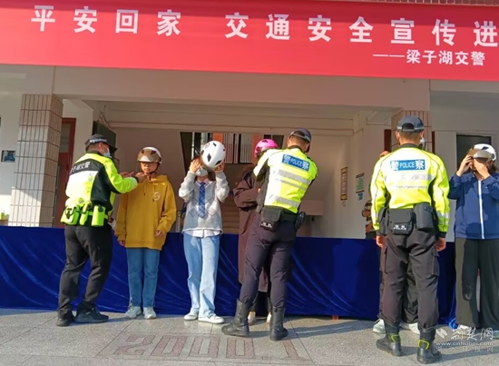 此外,交警大隊警官們與學(xué)生進行了互動,現(xiàn)場指導(dǎo)學(xué)生如何正確佩戴頭盔和騎行。