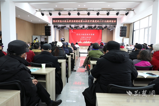 荊楚網(wǎng)(湖北日?qǐng)?bào)網(wǎng))訊(通訊員 劉學(xué)文 魏君)12月28日,鄂州市總工會(huì)主席宣講團(tuán)赴雷山社區(qū),開展黨的二十大精神宣講活動(dòng)。