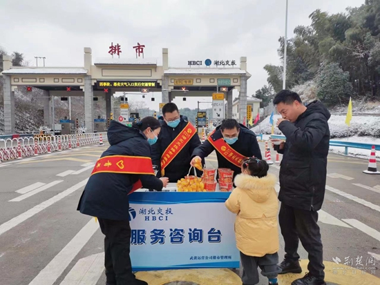 為助力旅客返鄉(xiāng)團圓,湖北交投武黃運營公司杭瑞高速排市管理所青年志愿服務隊迅速行動,開展“聽得見的微笑”服務,主動將免費的熱飲和食物送到司乘人員手中,讓收費站秒變服務站,讓司乘路堵心不堵。