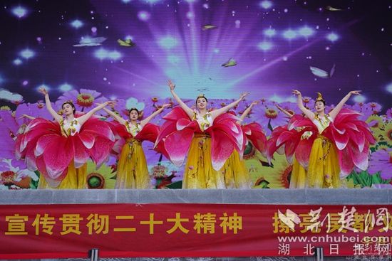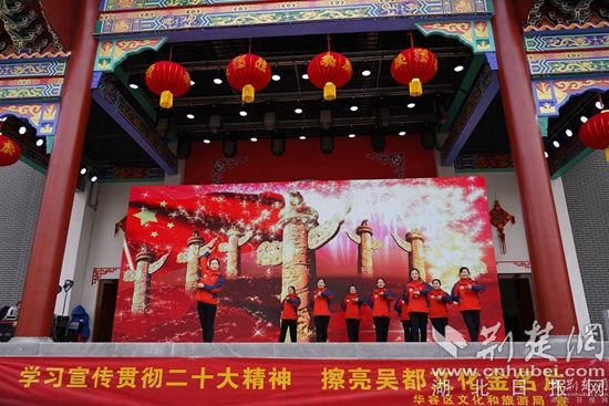新春廟會(huì)將黨的二十大宣講、文藝演出與民俗表演相結(jié)合,開(kāi)場(chǎng)舞蹈《荊楚歡歌》、湖北大鼓《二十大精神放光芒》、詩(shī)朗誦《航程》、反串《長(zhǎng)袖舞》、男聲獨(dú)唱《我和我的祖國(guó)》等文藝節(jié)目和傳統(tǒng)的舞獅、雜技、魔術(shù)等老百姓喜聞樂(lè)見(jiàn)的表演在廟會(huì)現(xiàn)場(chǎng)輪番上演。