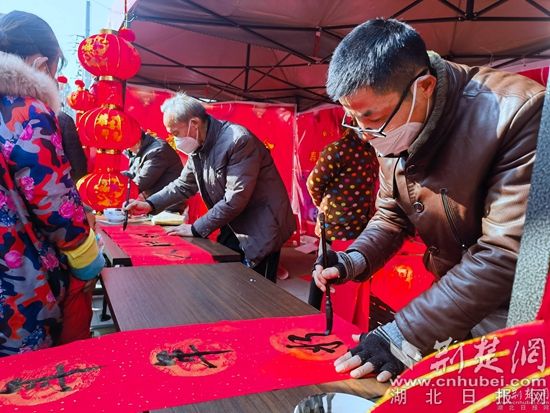 現(xiàn)場(chǎng)寫、送對(duì)聯(lián)。通訊員 供圖