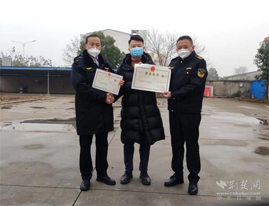 市場監(jiān)管局工作人員親自上門送上了帶有“年味”的營業(yè)執(zhí)照,“春節(jié)第一天能收到這樣一份特殊的禮物,太感謝了,我不僅不用來回跑了,還能提前經(jīng)營,必須點個贊!”蔣先生對市場監(jiān)管分局春節(jié)期間提供的注冊服務(wù)贊不絕口。