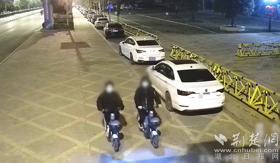 鳳凰派出所隨即聯(lián)合市局刑偵支隊依托“情指勤輿”一體化實戰(zhàn)化運行機(jī)制,根據(jù)基站自動報警時段,重點對其附近路段的公共視頻資料進(jìn)行研判,果然發(fā)現(xiàn)了疑點:由于報警時間段為凌晨,周邊道路幾乎沒有人,所以兩名騎著共享自行車的戴口罩男子引起了民警的注意。
