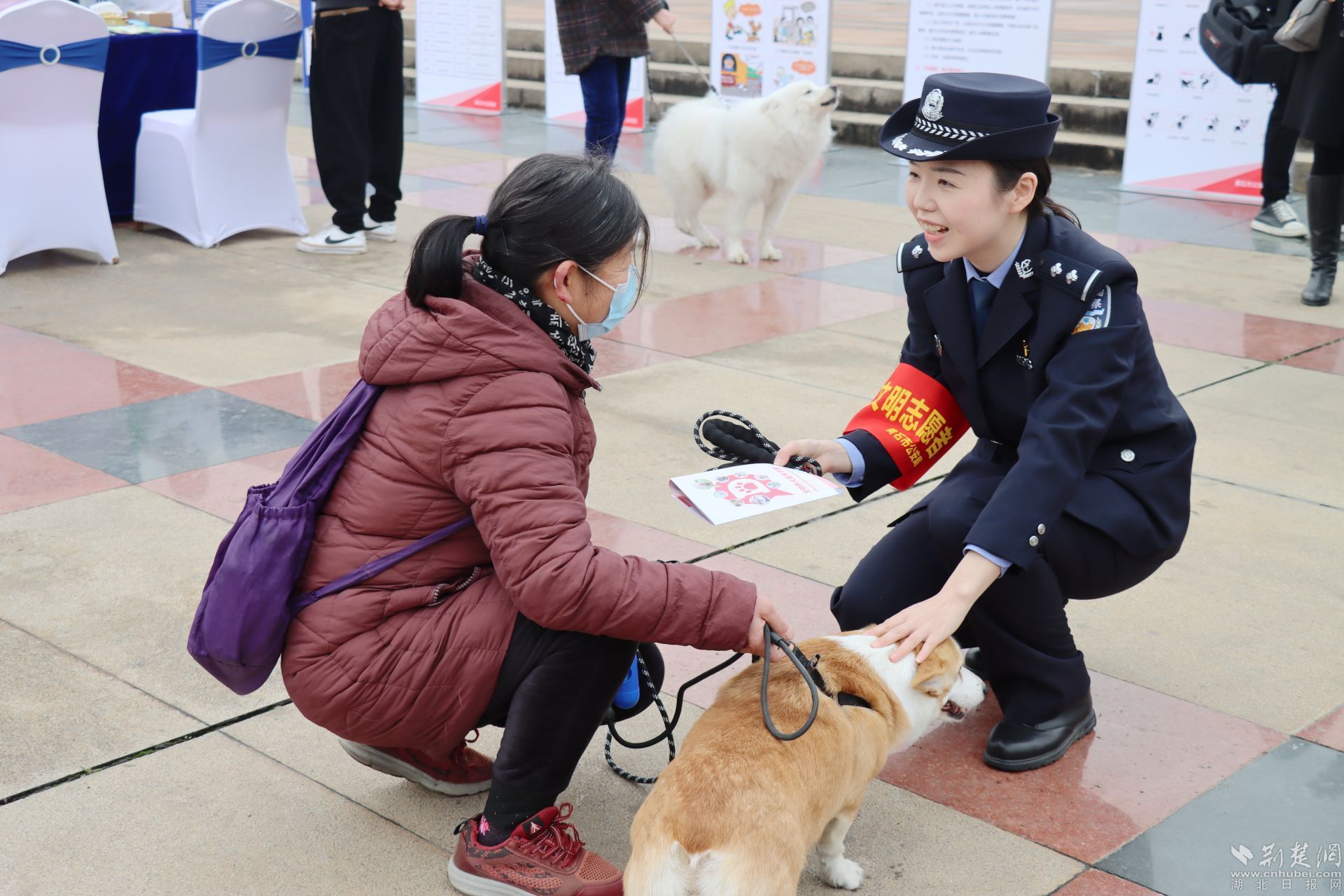 為市民發(fā)放文明規(guī)范養(yǎng)犬宣傳冊(cè)。劉璐 攝