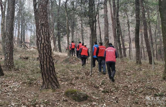 天堂寨,紅馬甲閃耀在林海中。通訊員 供圖