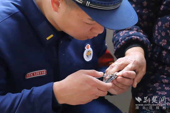 為老人修剪指甲。通訊員 供圖