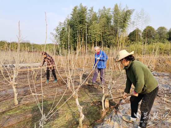 在橫溝橋鎮(zhèn)豐順農(nóng)業(yè)生態(tài)采摘園,10多名果農(nóng)正在精心在給60余畝桑葚樹松土、施農(nóng)家肥。只見果農(nóng)們二人一組,一個打坑,一個施肥,然后覆土蓋膜,配合默契。