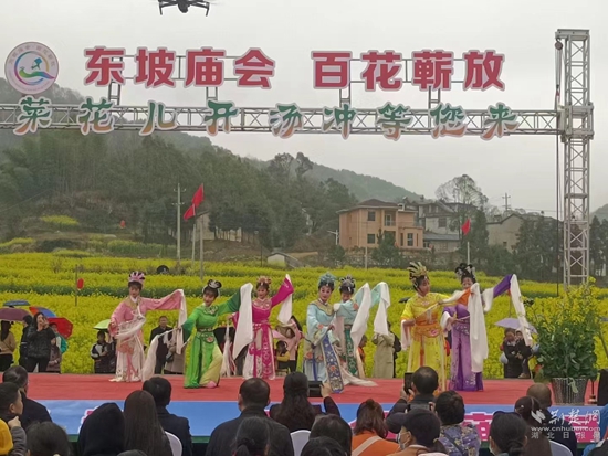 為持續(xù)推動?xùn)|坡廟會文化品牌在蘄春落地生根,該縣堅(jiān)持以文塑旅、以文塑城、以旅彰文、以文化人工作導(dǎo)則,蘄春縣委宣傳部以“東坡廟會·百花蘄放”為載體,從群眾需求出發(fā),傾力打造覆蓋城鄉(xiāng)10場特色文化活動和12場文藝宣講活動,不僅豐富了群眾的精神文化生活,也讓群眾在觀看節(jié)目的同時(shí),了解黨的政策、聆聽黨的聲音,真正將文化惠民、服務(wù)百姓落到實(shí)處。