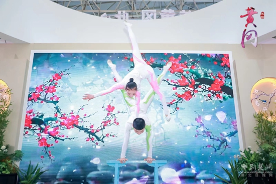 荊楚網(wǎng)(湖北日報(bào)網(wǎng))訊(通訊員 浠小文)4月22日,第二屆中國(武漢)文化旅游博覽會(huì)在湖北省武漢市開幕,浠水雜技節(jié)目《花仙蝶舞——轉(zhuǎn)碟》精彩亮相。