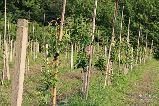 如按照長(zhǎng)、中、短結(jié)合,以短養(yǎng)長(zhǎng)、多種經(jīng)營(yíng)、效益互補(bǔ)的方法逐年逐步完善農(nóng)場(chǎng)的建設(shè);選擇與其他品種錯(cuò)峰上市、人力成本更低的桃、梨品種;采取獲得湖北省自然基金的梨樹種植最新技術(shù)“雙臂順行式”新型棚架栽培技術(shù)種植。