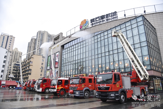 警報(bào)拉響、車輪滾滾、應(yīng)急力量聞令出戰(zhàn);逃生疏散、火場搜救、高噴射水......這一幕幕驚心動魄的場景發(fā)生在黃石市防災(zāi)減災(zāi)宣傳周啟動儀式暨城市消防應(yīng)急疏散演練活動現(xiàn)場。演練活動假設(shè)摩爾城中商百貨2樓一商戶裝修動火作業(yè)時不慎引起火災(zāi),過火面積約50平方米,有人員被困。市政府迅速啟動應(yīng)急預(yù)案,調(diào)集應(yīng)急力量參與處置。隨著現(xiàn)場指揮令下,單位自救、人員疏散、傷員搜救、冷卻排煙、冷卻滅火以及金屬拉梯救人等諸多演練科目依次上演。