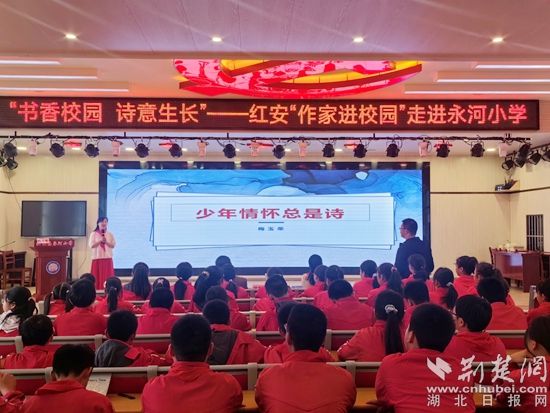 荊楚網(wǎng)(湖北日?qǐng)?bào)網(wǎng))訊(通訊員毛紅平 董改 劉志勇)5月24日,紅安縣文聯(lián)、紅安縣作家協(xié)會(huì)組織作家走進(jìn)永河小學(xué),開(kāi)展一場(chǎng)主題為“名作家小作者、大手牽小手、作家進(jìn)校園”的文學(xué)志愿服務(wù)活動(dòng)。旨在培育文學(xué)人才,推進(jìn)全民閱讀,弘揚(yáng)詩(shī)歌文化,在校園播下文學(xué)的種子。