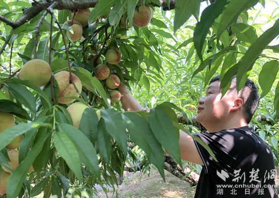 “您前期預(yù)訂的360斤桃,我們已經(jīng)備好貨了?!痹诓烧?,黃岡市豐順種植專業(yè)合作社理事長陳柏超正在跟客戶核對(duì)訂單。