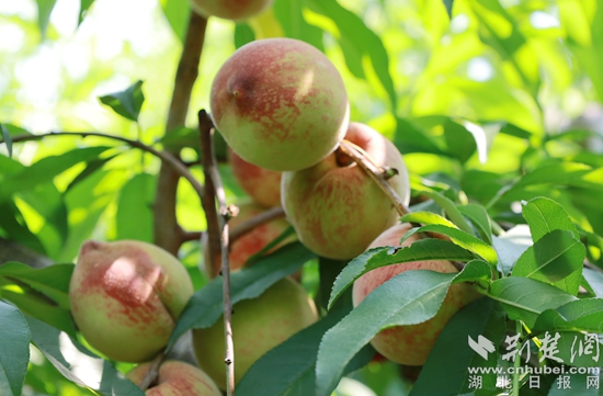 荊楚網(wǎng)(湖北日?qǐng)?bào)網(wǎng))訊(記者陶輝 通訊員付海洋 李志來)三月賞桃花,六月采桃忙。6月9日,記者來到黃州區(qū)陳策樓鎮(zhèn)張新灣村桃園基地,看見一棵棵掛滿果實(shí)的桃樹沉甸甸地彎著腰,紅彤彤的桃子掩映在綠葉之中,甚是喜人。這里新引種的狗血桃、黃桃喜獲豐收,慕名而來的游客自由采摘,歡喜滿面。