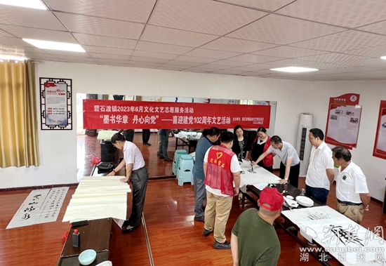 荊楚網(wǎng)(湖北日?qǐng)?bào)網(wǎng))訊(通訊員丁元中)6月9日上午,鄂城區(qū)碧石渡鎮(zhèn)開展“墨書華章 丹心向黨——喜迎建黨102周年”書畫活動(dòng)。