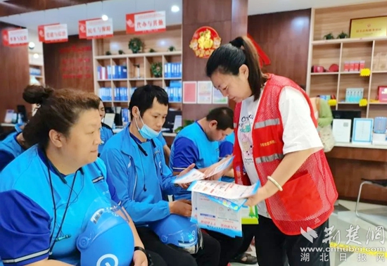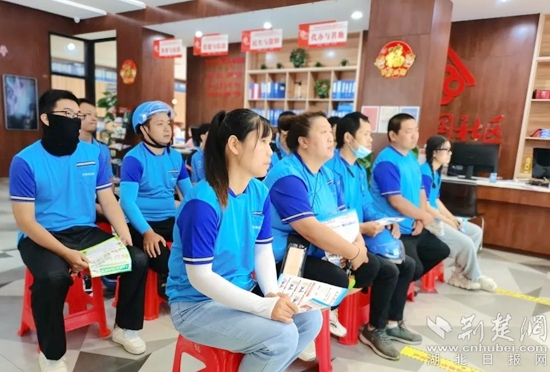 社區(qū)網(wǎng)格員為“藍騎士”們發(fā)放消防安全、預防溺水、防范詐騙等宣傳資料,動員他們在提升自身安全防護意識的同時,也通過優(yōu)質(zhì)文明的配送服務把“人人講安全 個個會應急”的理念傳遞給更多人。