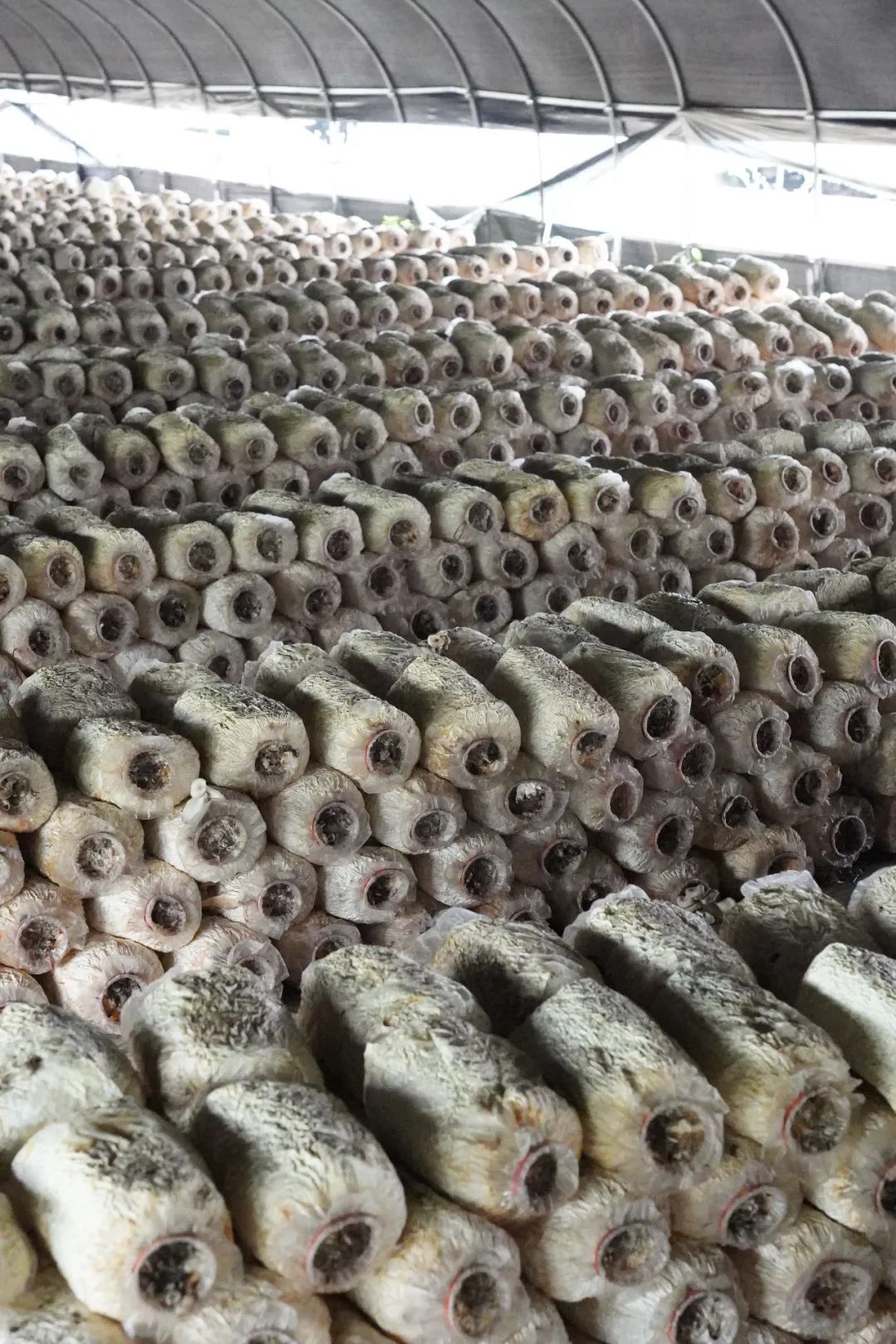 大棚里整齊排列的平菇
