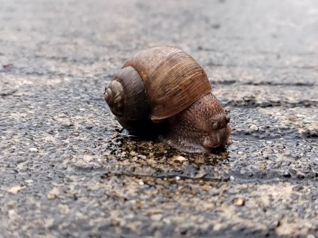 蝸牛背著剛洗過(guò)的軀殼緩行