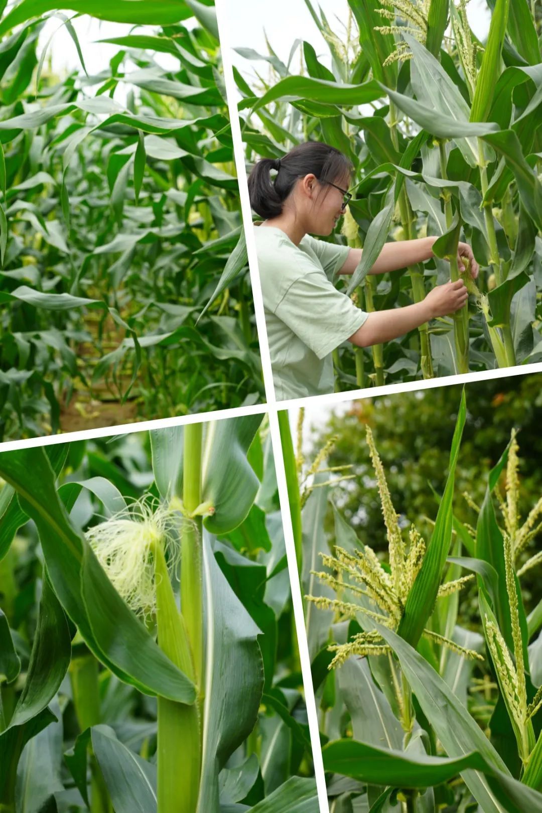 玉米桿站直了腰長得比人還高苞谷正長成型裹著淺綠的苞衣頂出一綹綹嫩黃的穗