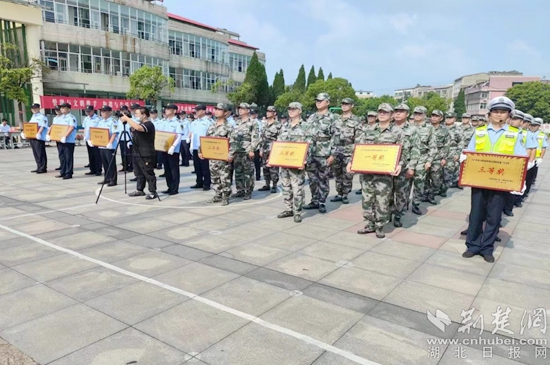 根據(jù)評(píng)分細(xì)則,由5名退役軍人組成的評(píng)委團(tuán),從著裝、紀(jì)律及隊(duì)形等方面依次對(duì)各隊(duì)進(jìn)行打分。湘卉物業(yè)、鑫杰物業(yè)、輔警代表隊(duì)獲三等獎(jiǎng),廟鵝嶺股經(jīng)社和南門股經(jīng)社代表隊(duì)獲二等獎(jiǎng),五里墩股經(jīng)社代表隊(duì)榮獲一等獎(jiǎng)。弘強(qiáng)物業(yè)代表隊(duì)獲得組織獎(jiǎng),執(zhí)法中心代表隊(duì)獲特別貢獻(xiàn)獎(jiǎng)。