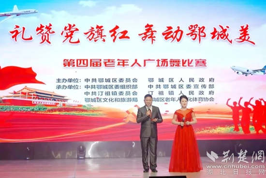 荊楚網(wǎng)(湖北日報(bào)網(wǎng))訊(通訊員 張心怡)禮贊黨旗紅,舞動(dòng)鄂城美。6月27日,鄂城區(qū)第四屆老年人廣場舞比賽在汀祖鎮(zhèn)綜合文化站一樓多功能廳舉行。