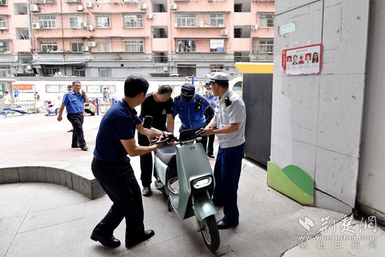 7月2日起,該小區(qū)物業(yè)在樓道醒目處張貼《關(guān)于禁止電動(dòng)自行車、摩托車在樓道內(nèi)停放的公告》,要求電動(dòng)自行車必須停放至小區(qū)停車棚或劃線區(qū)域,并于7月5日前整改完畢,否則將予以拖離。7日上午,聯(lián)合檢查組對(duì)小區(qū)個(gè)別仍然停放在樓道內(nèi)的車輛進(jìn)行依法清理移除。