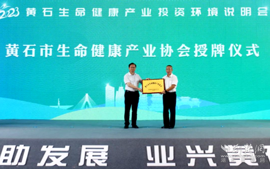 現(xiàn)場共簽約項目23個,總投資139.1億元,并為黃石生命健康產(chǎn)業(yè)協(xié)會授牌。