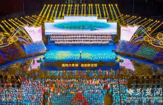 本屆黃梅戲藝術(shù)節(jié)的另一大特色是設(shè)立分會(huì)場(chǎng)。黃梅縣是千年古縣,更是黃梅戲藝術(shù)的發(fā)源地,本屆黃梅戲藝術(shù)節(jié)特別設(shè)置了黃梅縣分會(huì)場(chǎng)“唱響大黃梅”——一曲原創(chuàng)黃梅歌《靈潤(rùn)黃梅》奏響演出序章,黨群口、宣傳口、教育口、政府口、政法口、小池鎮(zhèn)、孔壟鎮(zhèn)、黃梅鎮(zhèn)和全國(guó)戲迷等11個(gè)黃梅戲演唱方陣身著彩裝競(jìng)唱黃梅戲經(jīng)典唱段,千余人齊唱《家在黃梅》,宏大的舞臺(tái),震撼的現(xiàn)場(chǎng),讓戲迷們著實(shí)過足了戲癮。