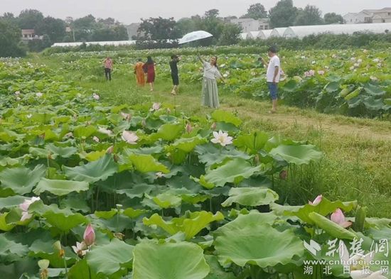荊楚網(wǎng)(湖北日報網(wǎng))訊(通訊員毛紅平)7月16日,天氣稍微轉(zhuǎn)涼,紅安縣城關(guān)鎮(zhèn)小豐山村四組的300畝連片“大寨田”里的荷花漸次綻放,粉荷碧葉亭亭玉立,美麗動人。一群身著旗袍的游人打著油紙傘穿梭于層層疊疊的荷葉中,伴隨著搖曳生姿的荷花,或歌詠或朗誦或造型,儼然形成夏日里一道靚麗的風(fēng)景線。