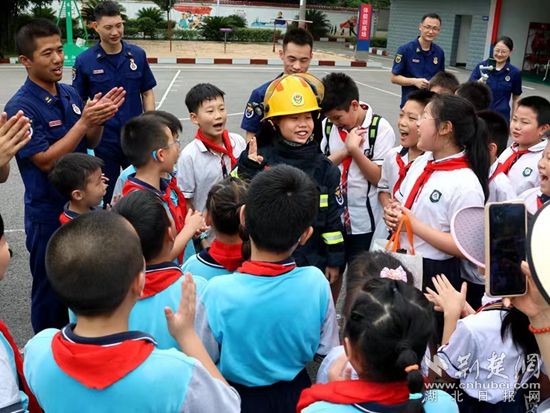 荊楚網(wǎng)(湖北日?qǐng)?bào)網(wǎng))訊(通訊員 張承妹)25日,黃石市消防救援支隊(duì)下陸大隊(duì)舉辦營(yíng)區(qū)“開(kāi)放日”活動(dòng),來(lái)自白馬山小學(xué)和有色小學(xué)的70余名小朋友在老師陪同下走進(jìn)營(yíng)區(qū),暢享了一次特殊的暑期“消防之旅”。
