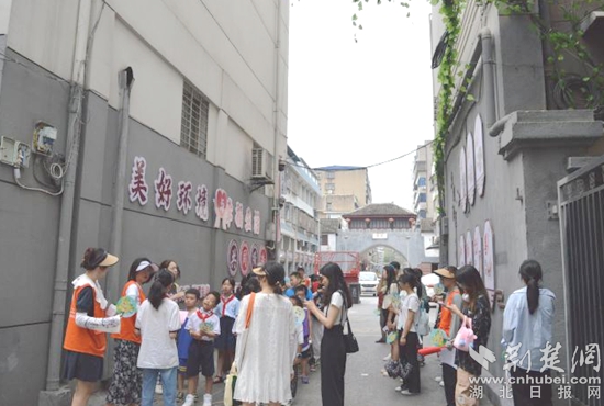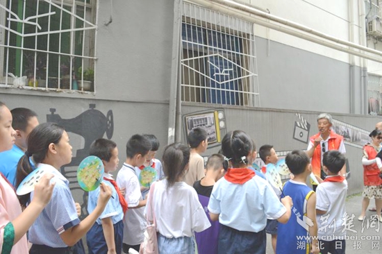 早上9時(shí),大家來到老公安局小區(qū)歷史文化長廊研學(xué)點(diǎn),小朋友們?cè)谏绻さ膸ьI(lǐng)下井然有序地聽取“紅領(lǐng)巾”小小講解員張景婷講述著“老公安局小區(qū)是古樓街歷史上繁華的一個(gè)商業(yè)中心,曾經(jīng)在明朝和清朝兩代570多年,這里是武昌縣衙門的所在地......”的歷史,大家仿佛看見了那個(gè)熱火朝天的時(shí)代。