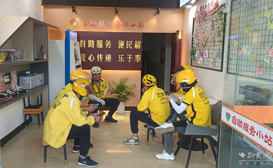 外賣(mài)小哥在暖“新”驛站休息。通訊員 供圖