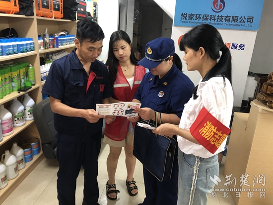 在西塞山區(qū),消防人員走進(jìn)沿街門面開展消防安全檢查宣傳?!疤鞖庋谉幔秒娏縿≡?,請不要私拉亂接線路、超負(fù)荷用電,要經(jīng)常檢查線路敷設(shè)是否完好?!毕廊藛T一邊檢查,一邊提醒商戶要經(jīng)常開展消防隱患自查自改,同時要熟練掌握滅火器、消火栓等器材使用方法。下陸區(qū)消防救援大隊結(jié)合夏季高溫防火特點(diǎn),整合戶外大屏、社會單位LED屏幕等社會資源循環(huán)播放夏季防火提示公告、高溫防火提示,提醒廣大人民群眾規(guī)范用火、用氣、用電。