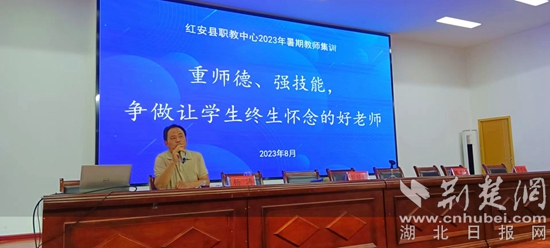 紅安縣職教中心2023年暑期集訓(xùn)以“重師德,強(qiáng)師能,爭做讓學(xué)生終生懷念的好老師”為主題,培訓(xùn)為期3天,包含師德師風(fēng)宣講、法規(guī)學(xué)習(xí)、中職班主任能力大賽賽項(xiàng)解析及備賽技巧等多個(gè)學(xué)習(xí)內(nèi)容,給全體教職工充電賦能,為學(xué)校高質(zhì)量發(fā)展增添新動能。