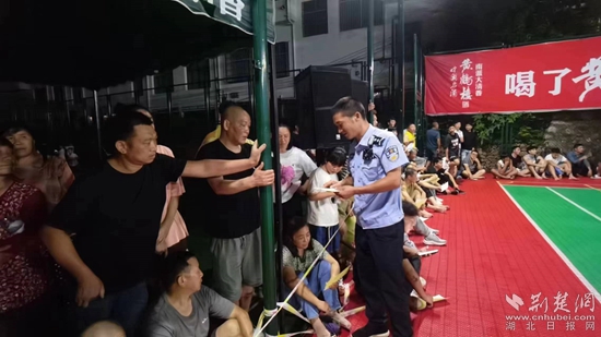“當(dāng)今社會,電信網(wǎng)絡(luò)詐騙‘花樣百出’,騙術(shù)層出不窮,不明鏈接千萬別點(diǎn)開,小利誘惑一定要警惕……”8月13日晚,在銅鐘鄉(xiāng)“村BA”籃球賽現(xiàn)場,銅鐘派出所民輔警利用中場休息時間耐心地給現(xiàn)場觀賽群眾講解防詐騙知識。
