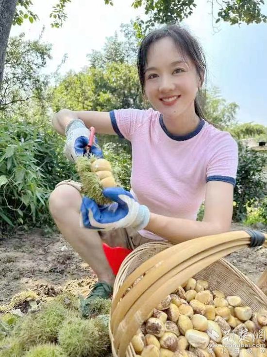 荊楚網(wǎng)(湖北日?qǐng)?bào)網(wǎng))訊(通訊員 付言坤 龔思竹 高晗 )“大家好,我是蕭瀟,歡迎大家來(lái)到直播間,今天我給大家?guī)?lái)的是我們羅田的板栗。羅田板栗被譽(yù)為百果之王,又脆又甜,吃起來(lái)糯香……”8月24日上午8時(shí),在自家屋后的板栗林里,羅田縣白廟河鎮(zhèn)唐家沖村女青年蕭瀟擺好三腳架及手機(jī),一邊用剪刀剝板栗刺球,一邊給粉絲推介家鄉(xiāng)的板栗。